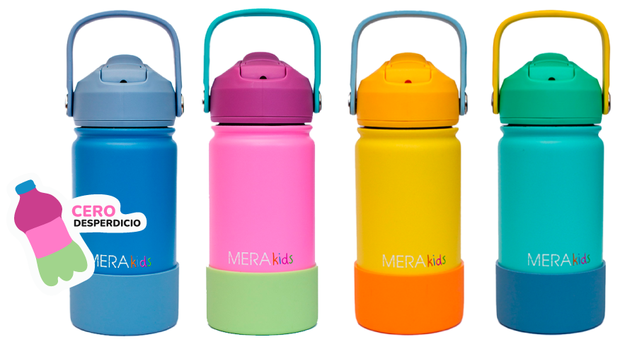 Las botellas reutilizables de acero inoxidable MERAkids son el aliado perfecto para que los más chicos se mantengan hidratados en